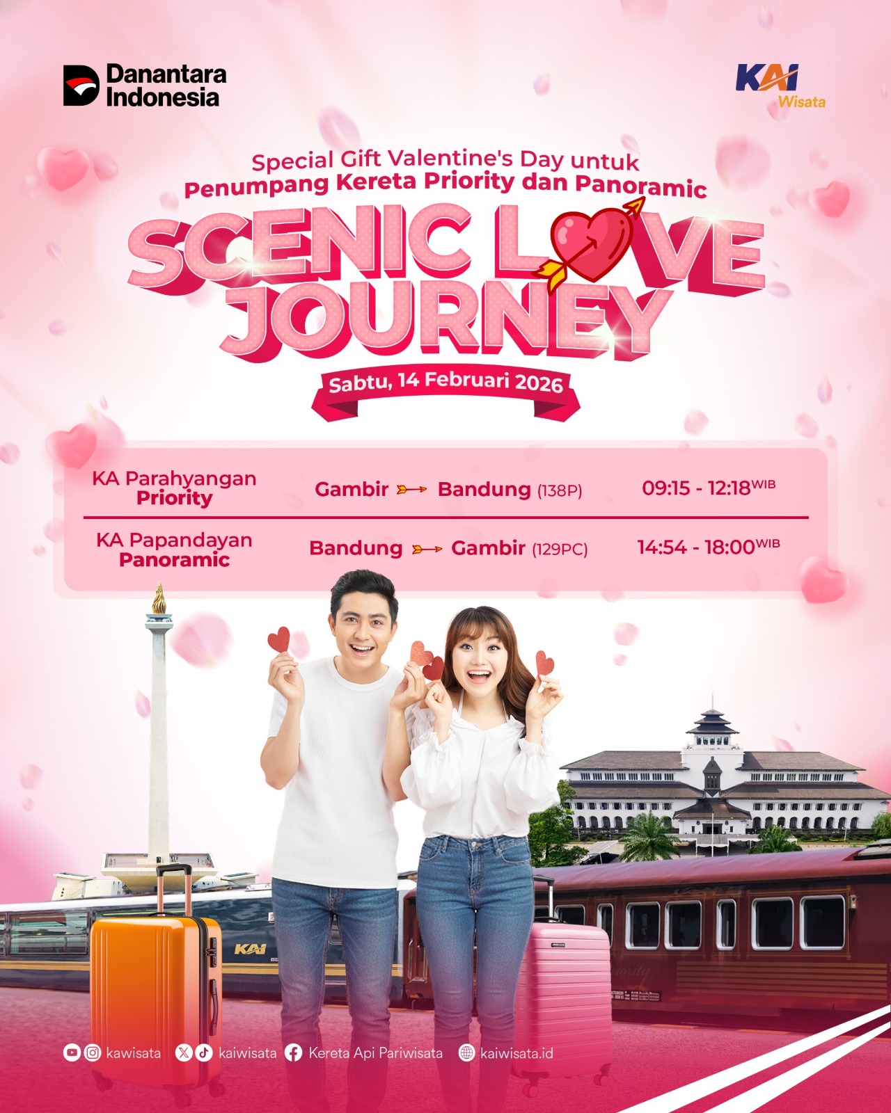 “Kami berharap Scenic Love Journey dapat menjadi bagian dari cerita indah para pelanggan, karena setiap perjalanan akan terasa lebih istimewa ketika dijalani bersama orang tersayang dan KAI Wisata bangga dapat menghadirkan momen tersebut di atas rel,” tutup Hetty Herawati. Karena setiap perjalanan akan terasa lebih bermakna saat dijalani bersama orang tersayang, Scenic Love Journey menjadi pilihan tepat untuk merayakan Valentine dengan cara yang berbeda—romantis, eksklusif, dan tak terlupakan.(ahmad)