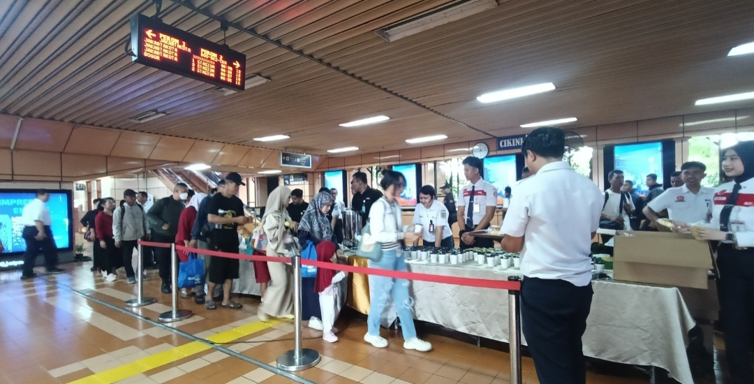 Sambut Hangat Pengguna KRL, KAI Commuter Bagi-Bagi 2.500 Cangkir Kopi dan Roti Gratis di Stasiun Cikini dan Juanda